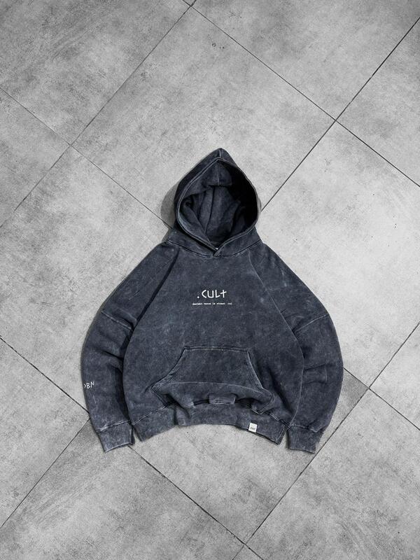 Spooky juice Acid washed puff back printed with front puff sleeve and cap printed oversized hoodie
