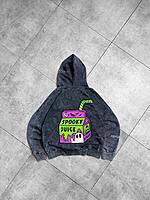 Hoodie Spooky juice Acid washed puff back printed with front puff sleeve and cap printed oversized hoodie