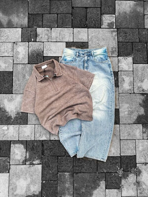 Collar zipper acid washed half sleeve Tees