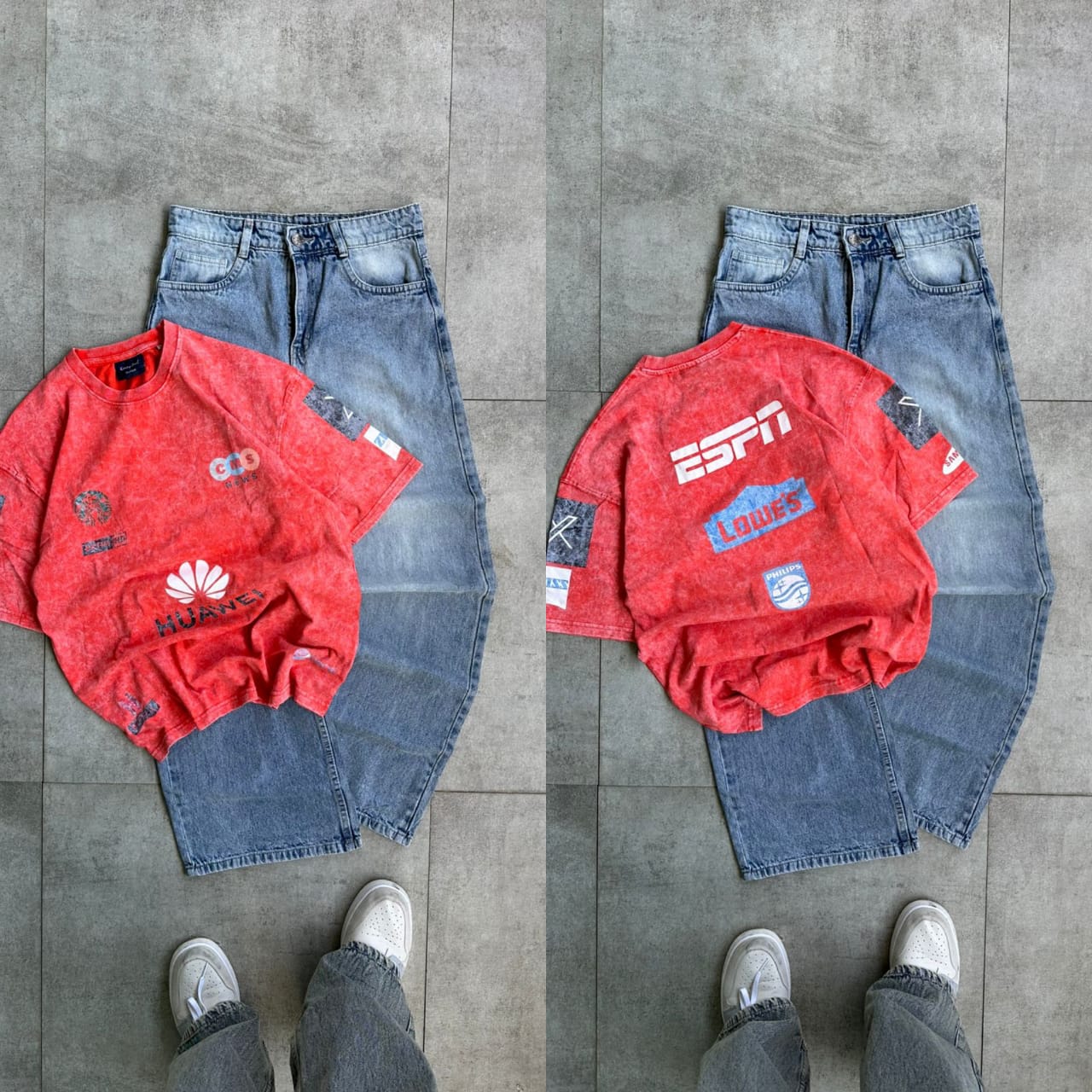 T-Shirts3/4 Sleeve Orange huawei acidwash front and back printed oversized tees